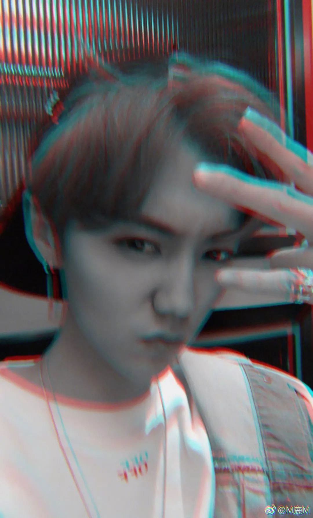 画面效果就像是你在看红蓝 3D 电影时忘了带上眼镜一样,这种色差特效给人一种迷幻、酷炫的感觉。虽然鹿晗没有公布他使用的 app,但如果你也想尝试一下类似的效果,用 Faceu 就可以做到。