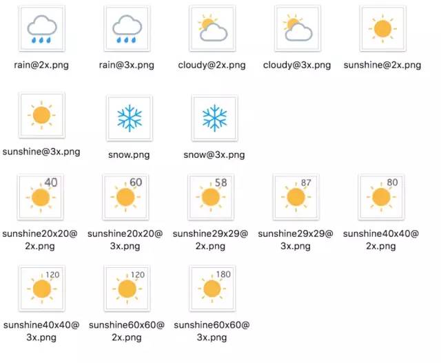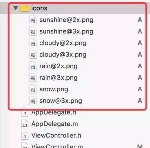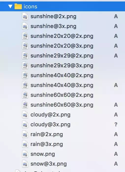 这里每种icon我只放了一个,如果有多个尺寸的icon,也可以直接全放进去: