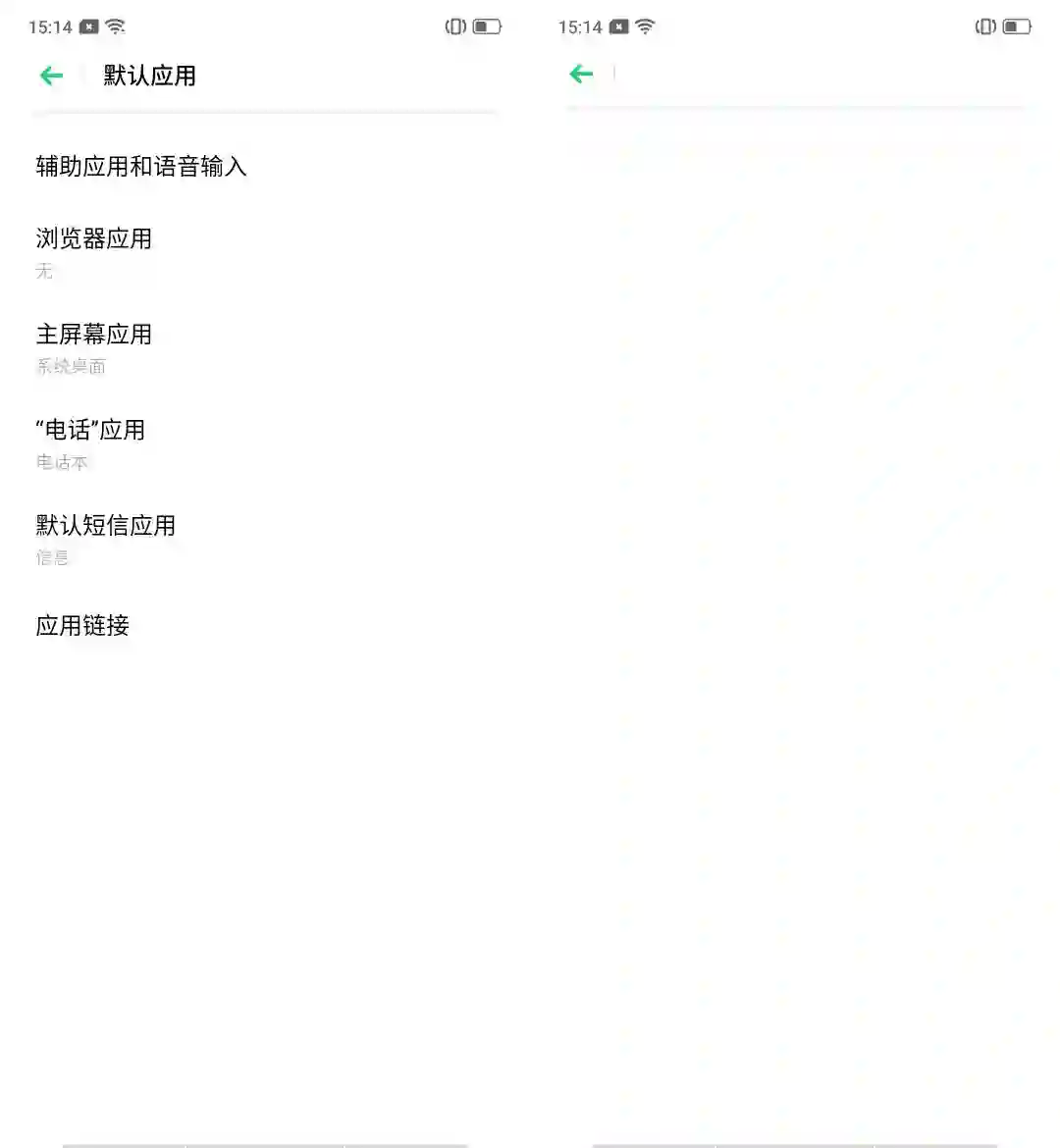 不过,我们很快发现,在 OPPO Reno 上,Nova 不能设置为默认桌面,在系统“主屏幕”应用的设置中,并没有出现选项,而是一片空白。Nova 安装完成后,回到主页的话,还是会进入 ColorOS 的系统桌面。
