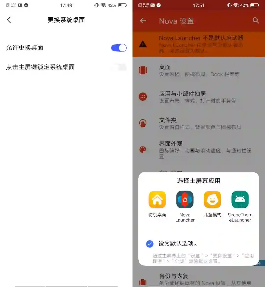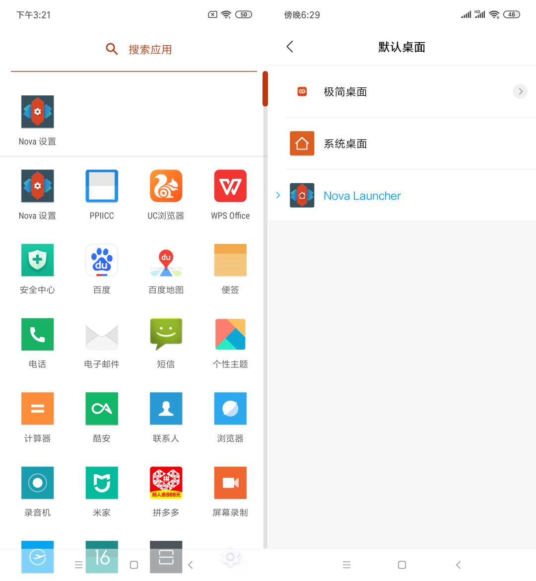 Nova 桌面在红米 Note 7 Pro 上可以正常使用,也能设置为默认桌面。