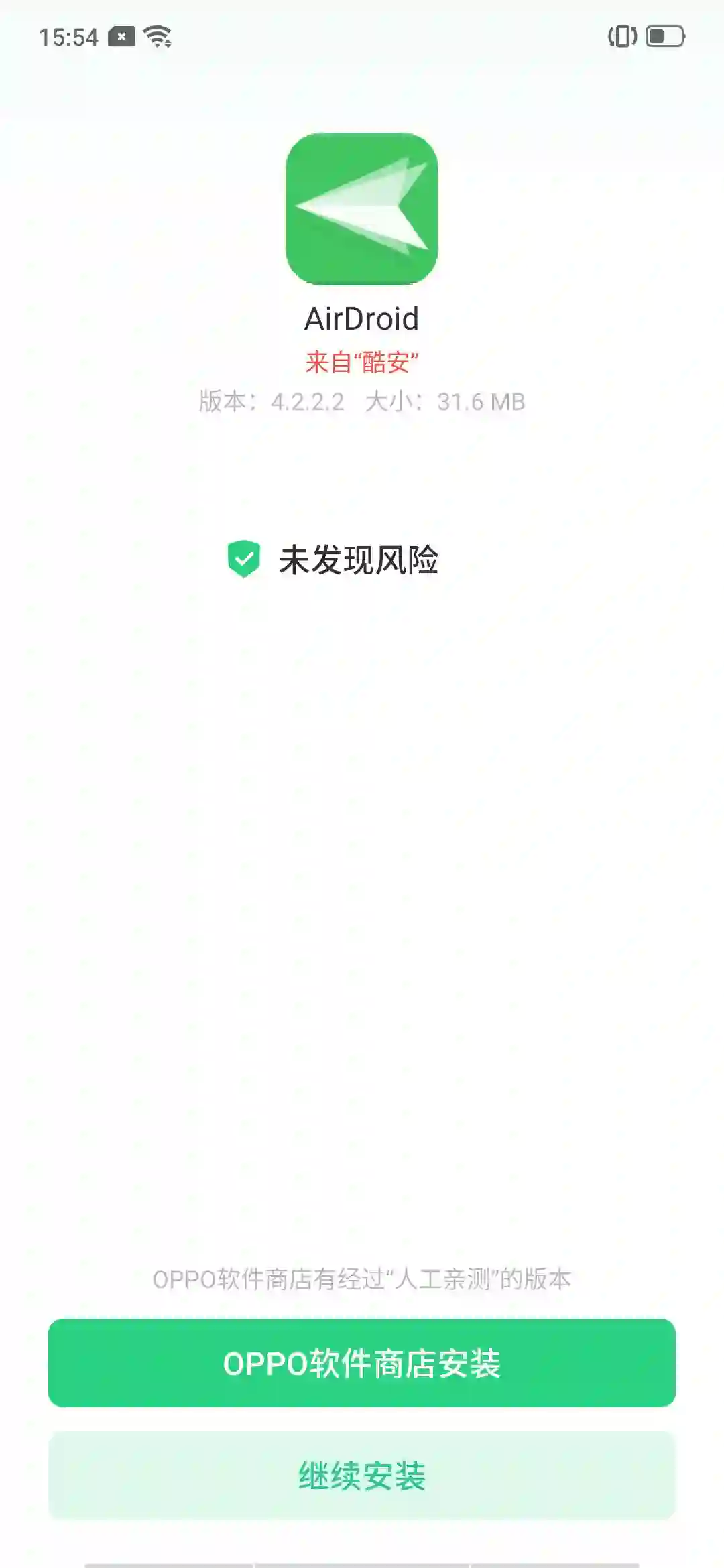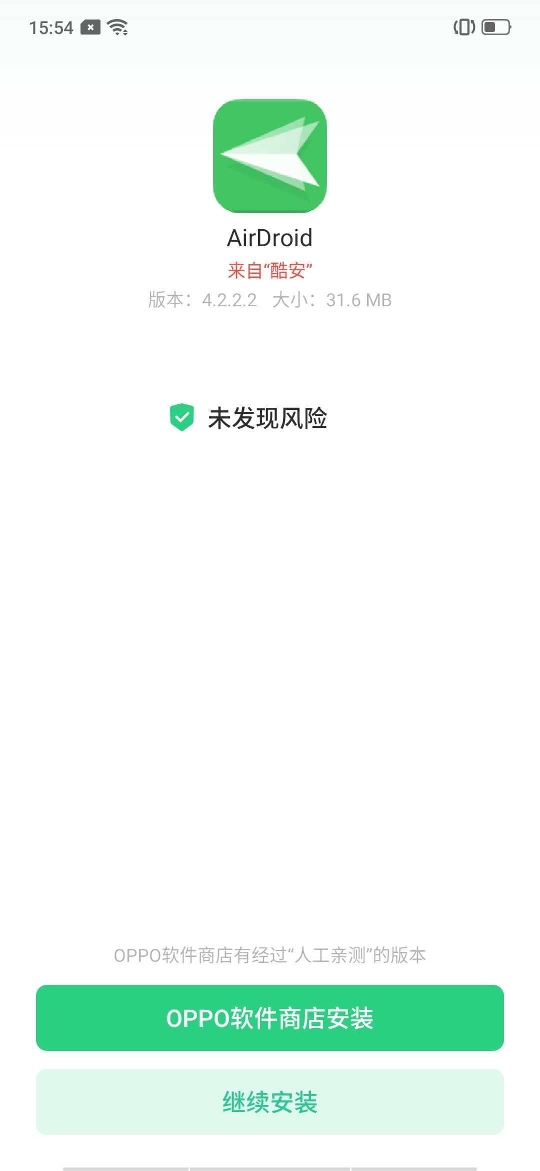 需要注意的是,系统自带的“安全应用推荐”是默认勾选的,开启后,通过官方应用商店之外的渠道安装第三方应用,安装界面都会出现一个颜色加深的“OPPO 软件商店安装”的按钮。