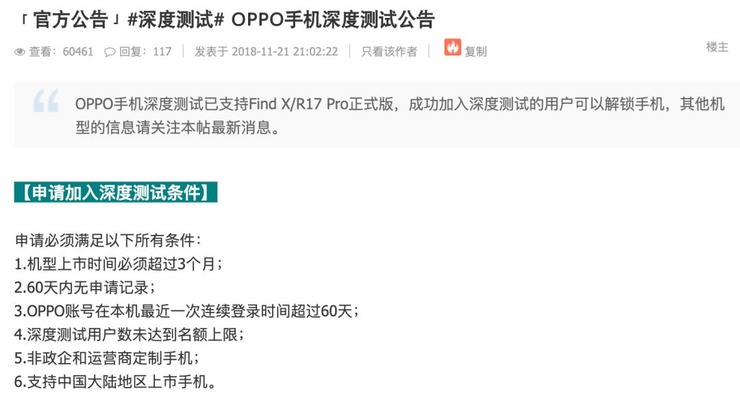 OPPO 已经开放了 Find X 和 R17 Pro 的“深度测试”,用户可以限量申请解除 BL 锁和刷入第三方固件。但目前来说,绝大部分 OPPO 手机还不能解锁或 Root。