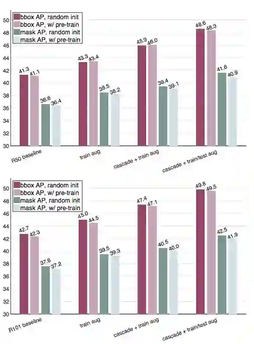 他们使用随机初始化的模型,不借助外部数据,取得了不逊于COCO 2017冠军的结果。