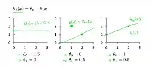 给定一个训练集,算法要输出一个假设函数h,实现,输入房子size,输出房子的预计价格,即h是一个x映射到y的函数,关键是怎么选择这个假设函数。