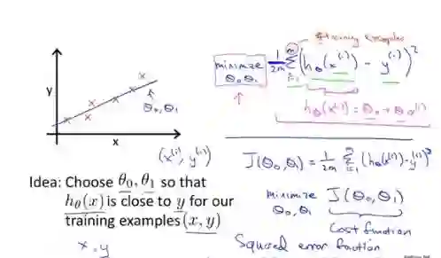 下次的学习总结中会介绍非常常用的算法——梯度下降算法(作用是使得代价函数最小化,用于求解未知参数),以及在线性回归模型上的应用(该算法不仅仅可用在线性回归上)。
