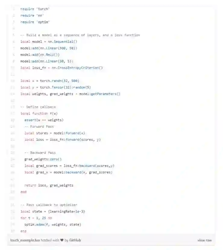 接下来我们来谈谈Torch。它是Facebook的开源机器学习库、科学计算框架和基于Lua编程语言的脚本语言。它提供了广泛的深度学习算法,并已被Facebook,IBM,Yandex和其他公司用于解决数据流的硬件问题。