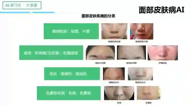 关于皮肤图像分析的案例,我会讲到银屑病 AI、面部皮肤病 AI 以及面部皮肤 AI 副产品,即皱纹斑点等目标检测处理这三个案例。