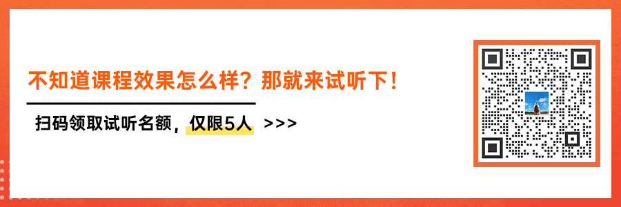假如你也不知道这个课程是否适合自己,不知道效果如何,也可以扫码咨询学习顾问老师,领取限量试听名额!