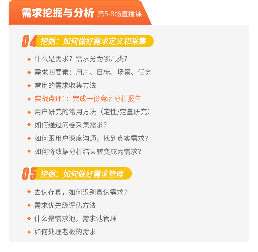 以上,就是这样一门包含了产品6大核心板块知识+5次实战项目+1V1服务的课程,一个迭代了49次的产品,课程质量是可以保证的。