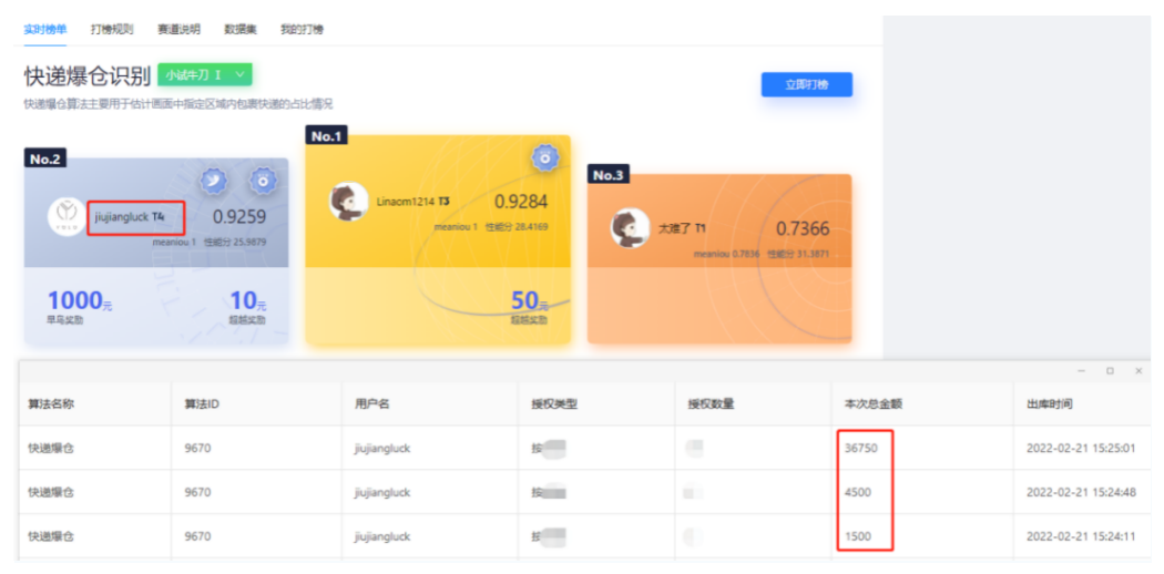 *晒个真实栗子:1月“快递爆仓打榜算法”订单分成:Jiujiangluck开发者当月获得分成42750元。