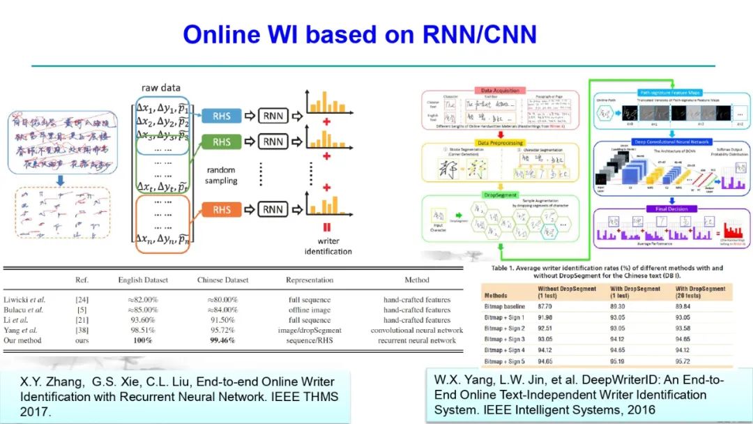 金老师对手写字符识别(尤其是汉字手写识别)、签名识别、笔迹鉴定、场景文本检测与识别进行了高质量的梳理,指出深度学习技术在该领域发挥的重要作用,并对其缺点(比如易于攻击等)进行了详细综述,并指明了未来可能的研究方向。