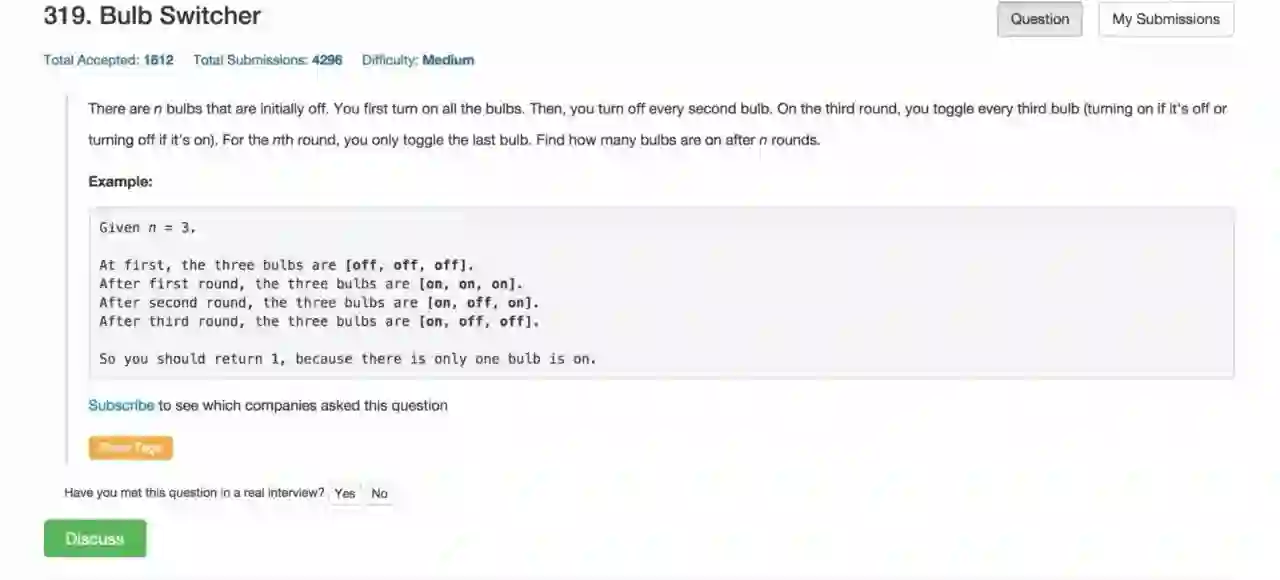 LeetCode 是一个很受欢迎的在线判题系统,它提供了 190 道挑战题目,这些题目可以帮助挑战者为面试做好技术准备。挑战者可以用 9 种编程语言直接在线完成挑战。虽然该网站不支持查看其他用户的解决方案,但用户可以为自己的解决方案提供统计数据,例如与其他用户相比,代码运行速度等等。