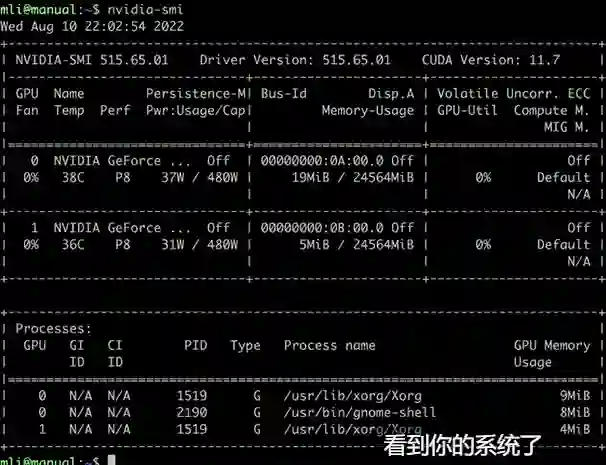 沐神的系统已经装上了驱动,同时,他也指出如果还没有驱动的话,也可以用apt-get装上nvidia-driver-515。