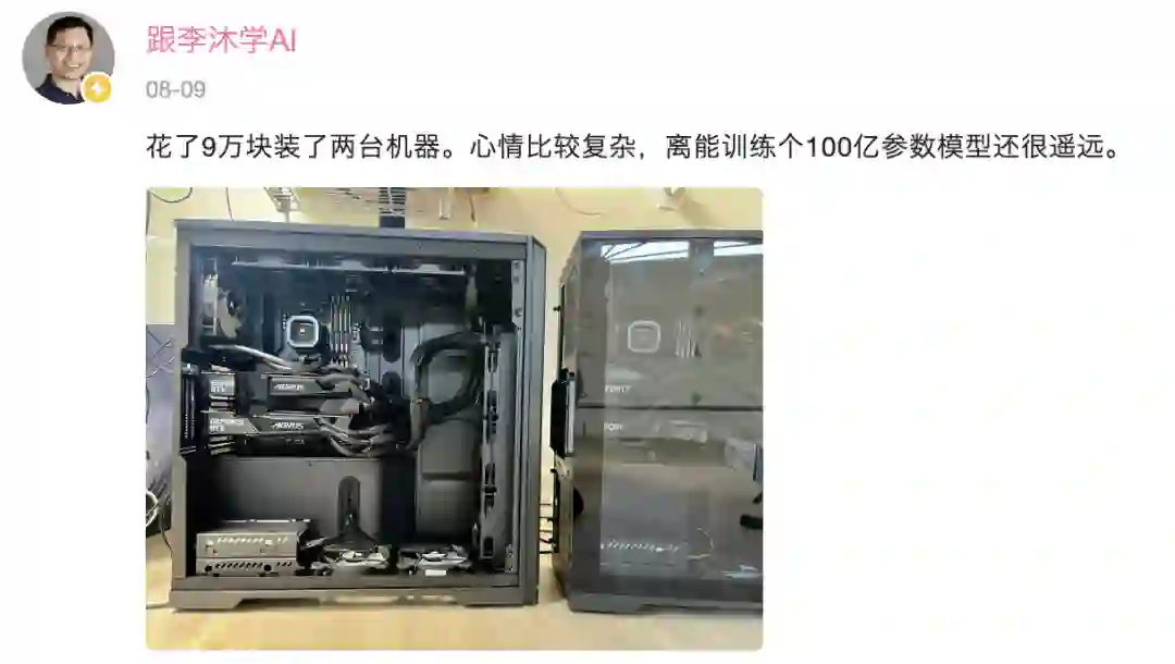 AI大牛沐神来装机了,还是训练100亿参数模型那种。