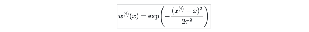 局部加权回归(LWR)—是线性回归的一种变体,它将每个训练样本的成本函数加权为w(i)(x),用参数 τ∈R可定义为: