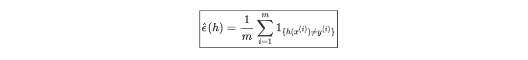 训练误差—给定一个分类器h,我们将训练误差定义为error ˆϵ(h),也被称作经验风险或经验误差,如下所示: