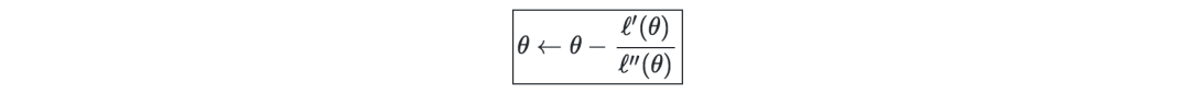 牛顿迭代法—是一种数值方法,用于找到一个θ,使 ℓ′(θ)=0成立。其更新规则如下: