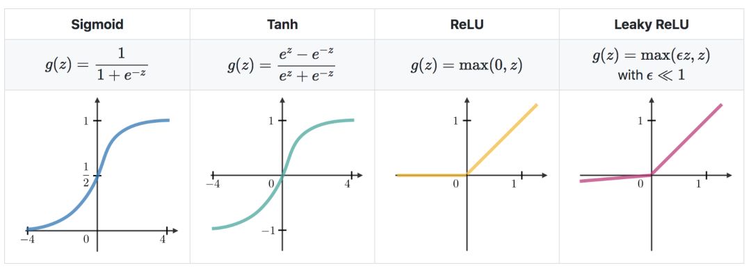 激活函数—在隐含单元的末端使用激活函数向模型引入非线性复杂性。以下是最常见的几种: