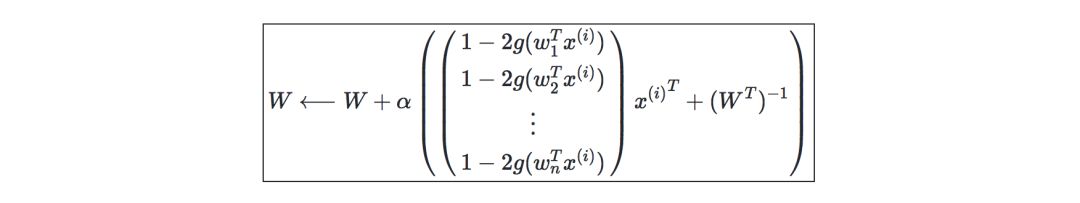 因此,随机梯度上升学习规则是对于每个训练样本x(i),我们更新W如下: