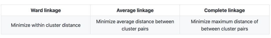 类型—为了优化不同的目标函数,有不同种类的层次聚类算法,如下表所示: