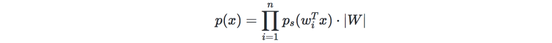 将x=As=W−1sx=As=W−1s的概率表示为: