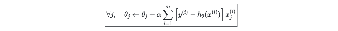 最小均方算法(LMS)—记 α为学习率,对一个包含m个数据点的训练集的LMS算法的更新规则(也叫Widrow-Hoff学习规则),如下所示: