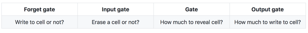 gate的类型—以下是在典型递归神经网络中存在的不同类型的gate: