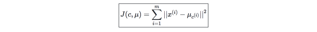 令c(i)表示为数据点i的类,μj为类j的中心。