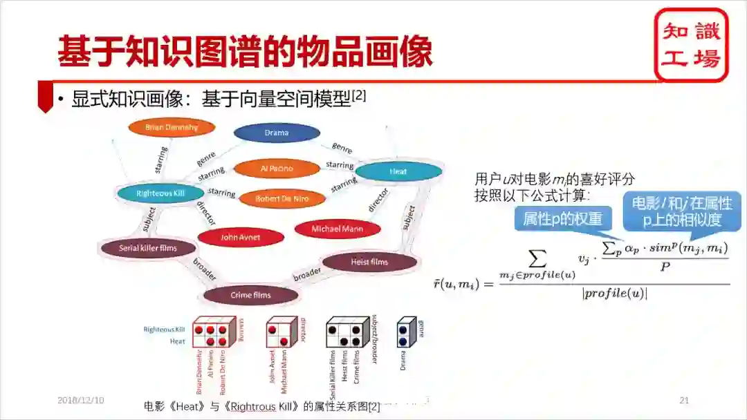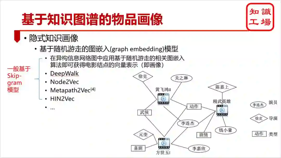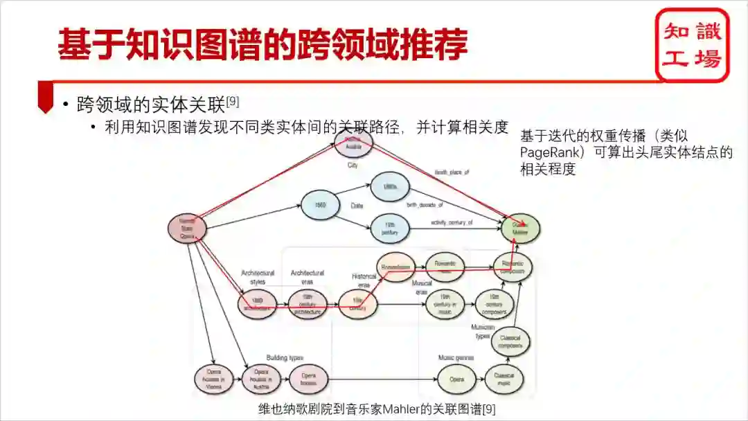 显式画像:从知识图谱中直接找到的关联(例如两部电影的共同属性)作为刻画两个物品相关性的依据。有基于向量空间模式和基于异构信息网络两种模式。