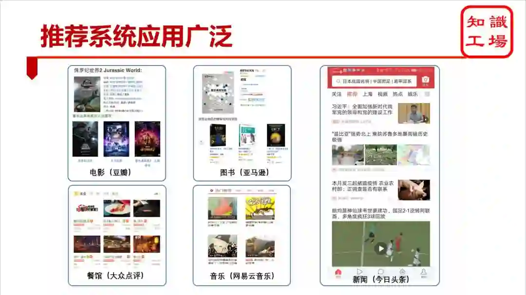 其次,还能提高推荐的多样性。在很多的推荐场景中,比如新闻推荐,我们知道多样性是一个很大的问题,我们很容易发现推荐算法发现了你的兴趣点之后,给你推荐的东西越来越像,比如你点了几个NBA的新闻,后面来的全是NBA新闻,一开始可能觉得还不错,时间稍微长一点,就会觉得厌烦了,阅读的视野也会越来越窄。这是因为很多算法是根据文本里面抽取出来的关键字和主题来猜测用户偏好,这样推荐的时候就会产生比较类似的结果。