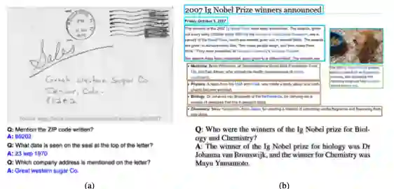 该任务为通过判断识别文本的内部逻辑来回答关于文档的自然语言问题。文档VQA中的文本信息在任务中起着至关重要的作用,现有的有代表性的方法都是以文档图像的OCR获取的文本作为输入。获得文档文本后,将VQA任务建模为不同的问题.主流方法将其建模为机器阅读理解(MRC)问题,根据问题从给定文档中提取文本片段作为相应的答案。