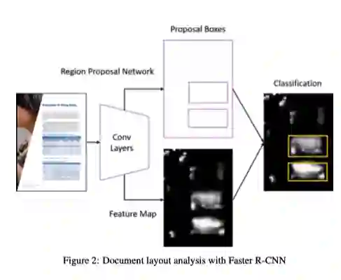 文档布局分析可以看作是对文档图像进行目标检测的任务。将文档中的标题、段落、表格、图表等基本单元是需要检测和识别的对象。Yang等人将文档布局分析作为像素级的分割任务,利用卷积神经网络进行像素分类,取得了较好的效果.