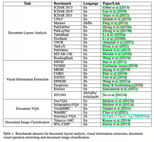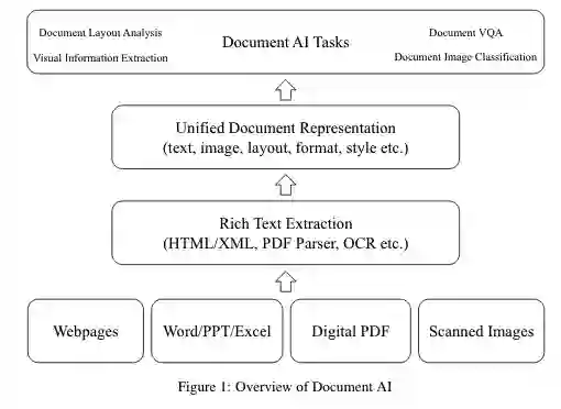 事实上,有些任务已经天生就是多模态很多年了。早在多模态成为焦点之前,就已经默默被研究二十来年了。比如,智能文档(Document AI)技术。所谓智能文档技术,也就是自动理解、分析业务文档技术,文档内容可包含文字、图片、视频等多种形式。由于理解多模态形式的多模态形式文的需求其实广泛长期存在,所以智能文档技术很多年来都是几个大厂的研究重点之一。近年来,深度学习技术的普及也更好地推动了例如文档布局分析、可视化信息提取、文档可视化问答、文档图像分类等智能文档算法的发展。近期,微软亚研院发表了一篇综述,简要回顾了一些有代表性的DocumentAI的模型、任务和基准数据集。小编认为这篇概述的总结体系非常扎实,是值得细细阅读的多模态相关综述,故与各位分享。