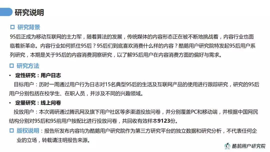 本期酷鹅用户研究院开展95后内容消费研究,发布《兴趣导向:95后内容消费洞察报告》为您揭晓。