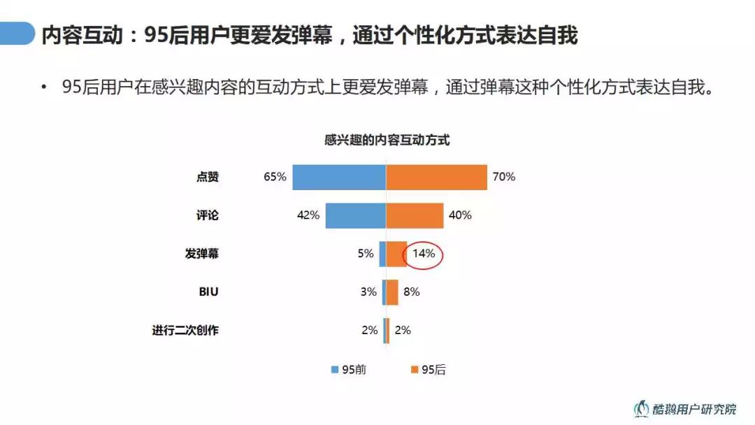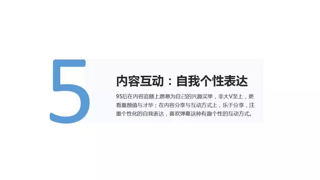 95后在内容追随上愿意为自己的兴趣买单,非大V至上,更看重颜值与才华;乐于分享,注重个性化的自我表达,喜欢弹幕这种有趣个性的互动方式。
