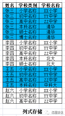 原来的六列数据是在一行,所以共用一个主键(即张三)。现在变成了六行,每行都需要一个主键(不然不知道这行数据是谁的),