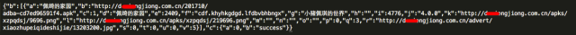 2.访问http://mail[.]zbmcc.cn/s获取插件Json数据。数据如下,a:插件包下载地址;b:版本号;c:设备sd卡存放位置;d:恶意弹窗控制指令数据,函数call的参数。
