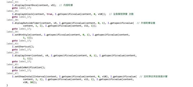l 监听应用安装、网络改变,进而调用子包,执行恶意行为;