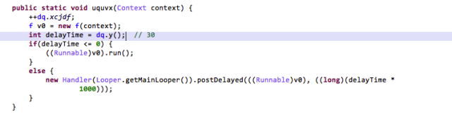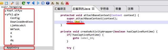 1.恶意代码是在入口activity的attachBaseContext被加载的,也就是应用一启动就会加载恶意代码块。为了躲避动态沙盒监测,恶意行为会延迟30s执行。