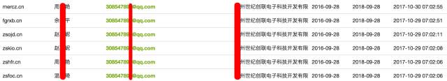 1、黑产团伙使用ailantian198*@126.com、lantian198*@foxmail.com、30854789*@qq.com作为“DowginCw”域名地址的公共邮箱,并使用这些邮箱注册大量其他恶意域名。