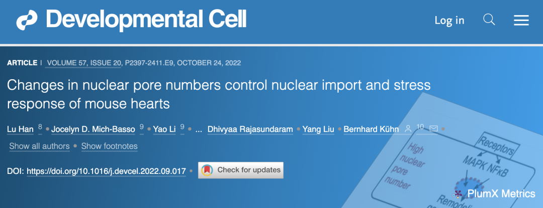 相关研究论文以“Changes in nuclear pore numbers control nuclear import and stress response of mouse hearts”为题,已发表在科学期刊 Developmental Cell 上。