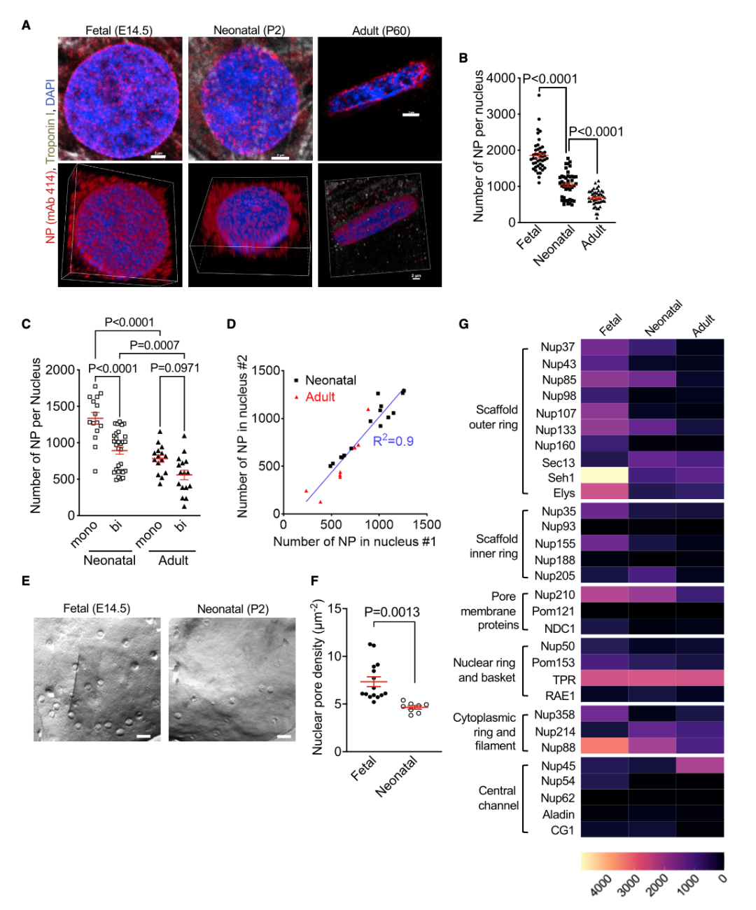 图|心肌细胞在成熟过程中核孔数量减少。(来源:该论文)