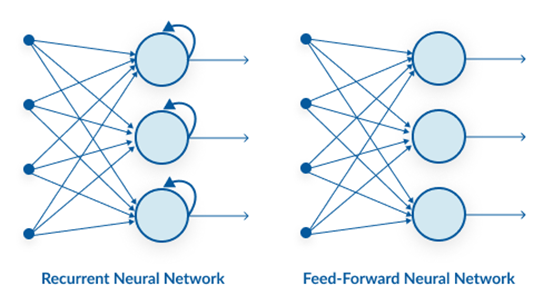 如上图所示,RNN在隐藏状态上有一个循环连接,此循环约束能够确保在输入数据中捕捉到顺序信息。