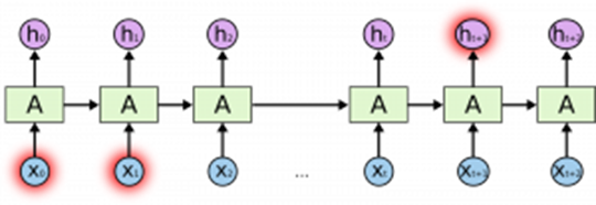 如图所示,在最后一个时间步长处计算的梯度在到达初始时间步长时消失。