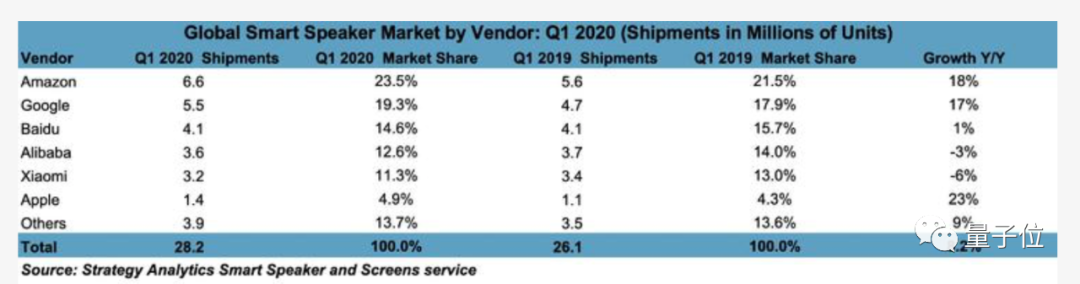 在智能手机市场遭受打击的2020年第一季度,智能音箱市场却不降反增。