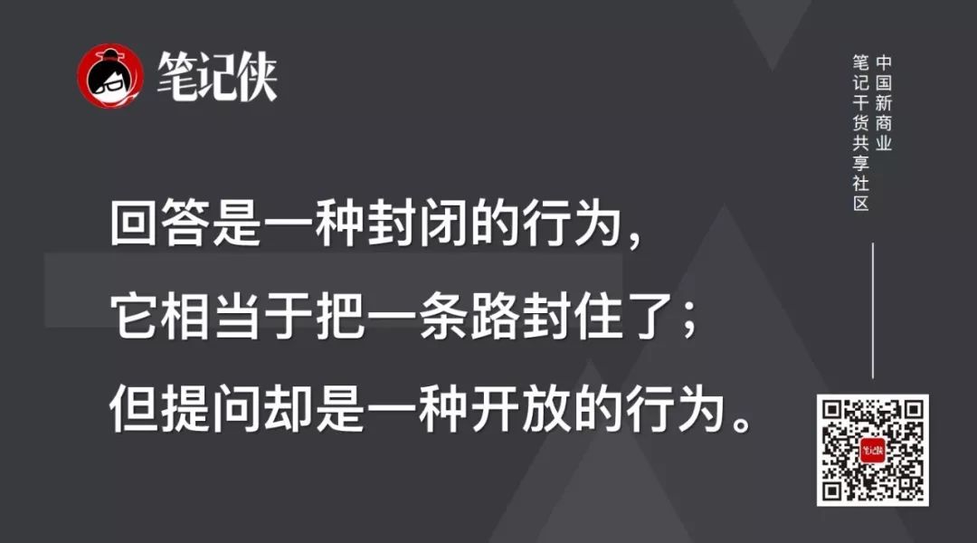 为什么呢?很简单。回答是一种封闭的行为,它相当于把一条路封住了;但提问是一种开放的行为。