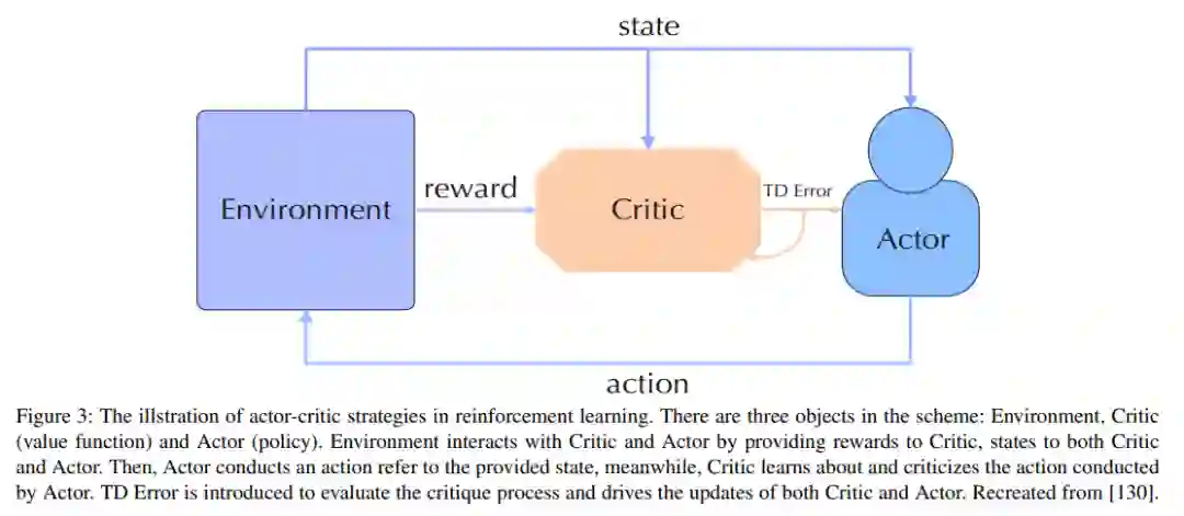 强化学习[135]是一种强调通过奖励预期行为和/或惩罚意外行为来最大化预期收益的人工智能范式。在强化学习中,存在两个相互作用的对象:Agent和Environment。Agent可以感知环境的状态,并对环境的反馈进行奖励,从而做出合理的决策。也就是说,Agent的决策函数根据环境的状态采取不同的行动,而学习函数根据环境的奖励来调整策略,环境可以在Agent的行为的影响下调整自己的状态,并将相应的奖励反馈给Agent。