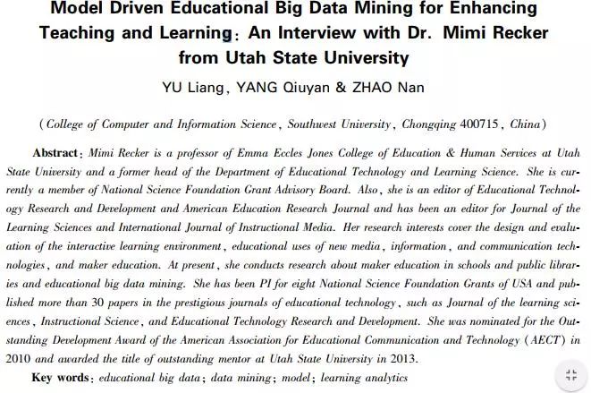 雷克教授:自20世纪80年代以来,教育研究人员一直在分析由学生与计算机系统交互而产生的曰志文件(早期形式的“大数据”)。其中最突出的是研发智能导学系统(intelligent tutoring system)(包括研究学习过程),为这些数据源开发新的分析方法。