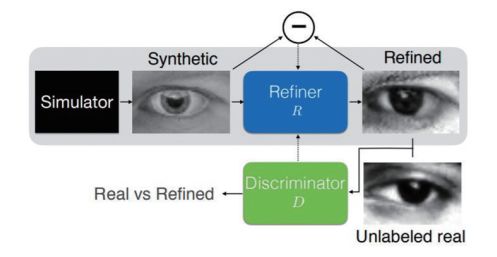 近年来,深度学习在计算机视觉许多领域取得突破性进展。2017年 7月 23日,计算机视觉领域顶级会议——计算机视觉与模式识别国际会议(IEEE Conference on Computer Vision and Pattern Recognition,CVPR)公布了 2017年会议最佳论文,其中一篇是苹果公司 Shrivastava 团队的论文《Learning from simulated and unsupervised images through adversarial training》,这篇文章引起了领域内学者的广泛关注。该文尝试解决训练大型深度网络需要大量标签数据的问题。研究表明,通过对抗训练的方式提高仿真图片的真实性,从而深度网络可以从无标签仿真图片中学习知识,提高真实场景下的识别能力。