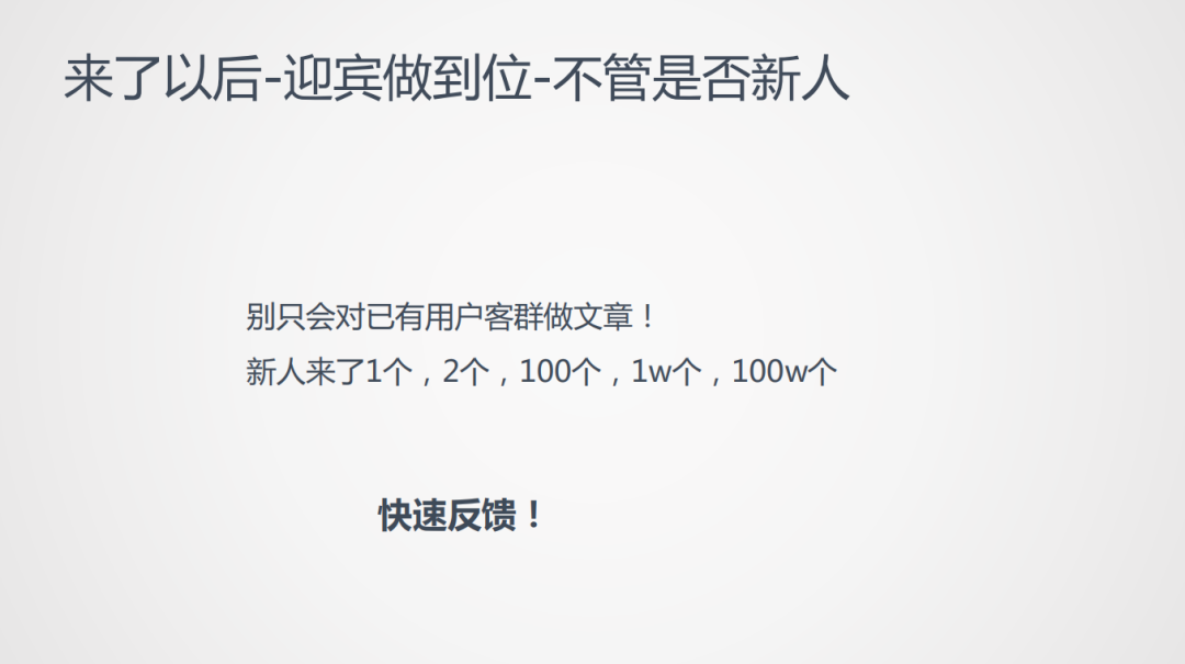 用户来了之后,需要快速反馈,不能只对已有用户群体做文章,当扩展到某一个新的用户群体,必然会有第一个用户,第二个用户,算法无法根据少量用户给出结论,但是当用户达到1万,100万时需要快速的反馈出用户体验不好或用户流失的原因。